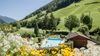 Wie wäre es mit einem Bad im beheizten Outdoor-Pool, inmitten der grünen Wiesen und umrahmt von den imposanten Berggipfeln? Der großzügige Pool inklusive integrierter Whirl-Liege im idyllischen Garten verspricht Entspannung pur an der reinen Bergluft.